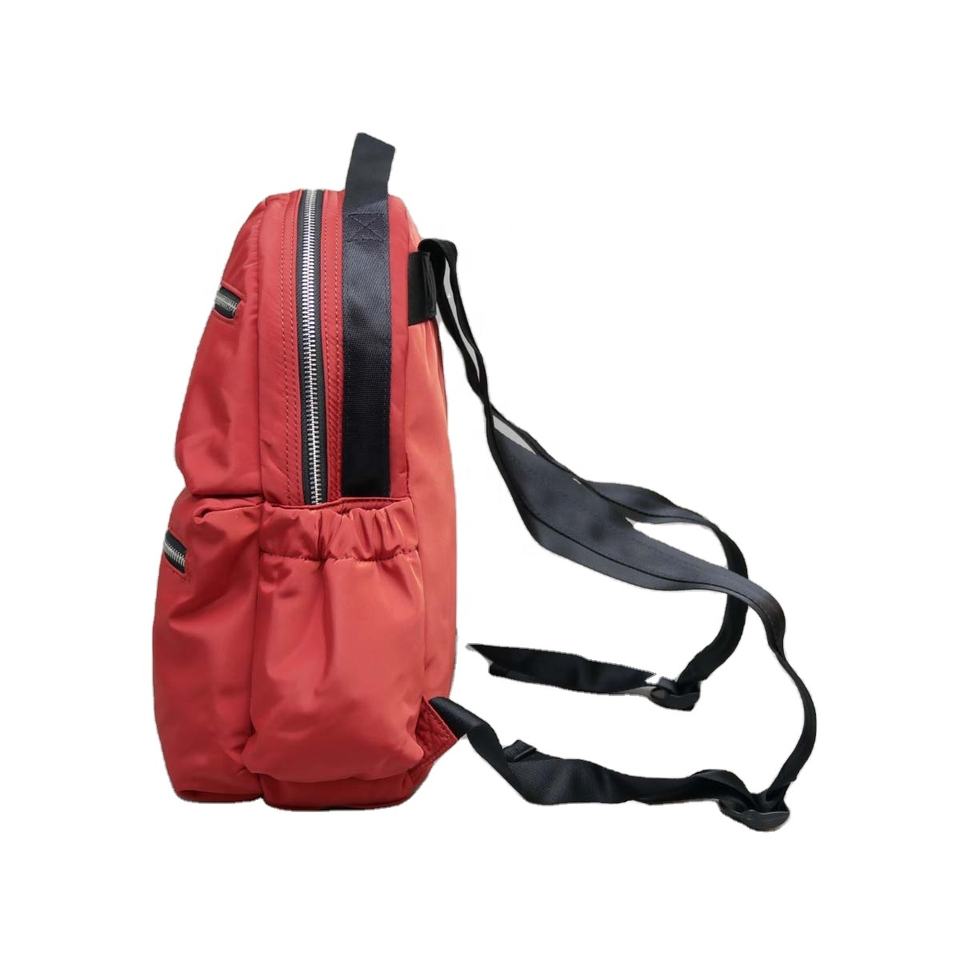 Factory Directly Sell Unisex Polyester Brick Red Casual Use Two Front Pocket Metallic Zipper Light Weight Bag Pack School Bag