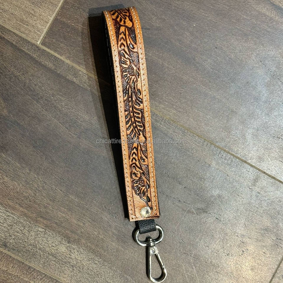 Product name:Hand Tooled Leather Lanyard Wristlet Keychain
