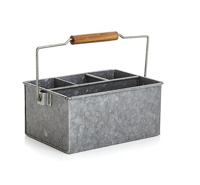 Factory Hot Sale Custom Table Galvanized Kitchen Utensil Metal Caddy with Handle Handmade Fancy Utensils Holder