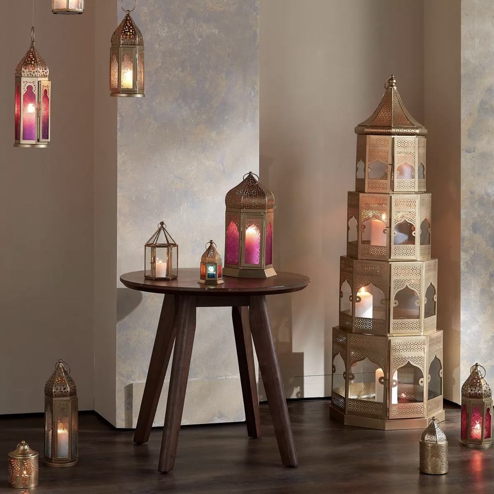 Factory Hot Sell Moroccan Candle Lantern Gold-Colored Glass for Home Garden Decorations for Christmas and Ramadan Lights