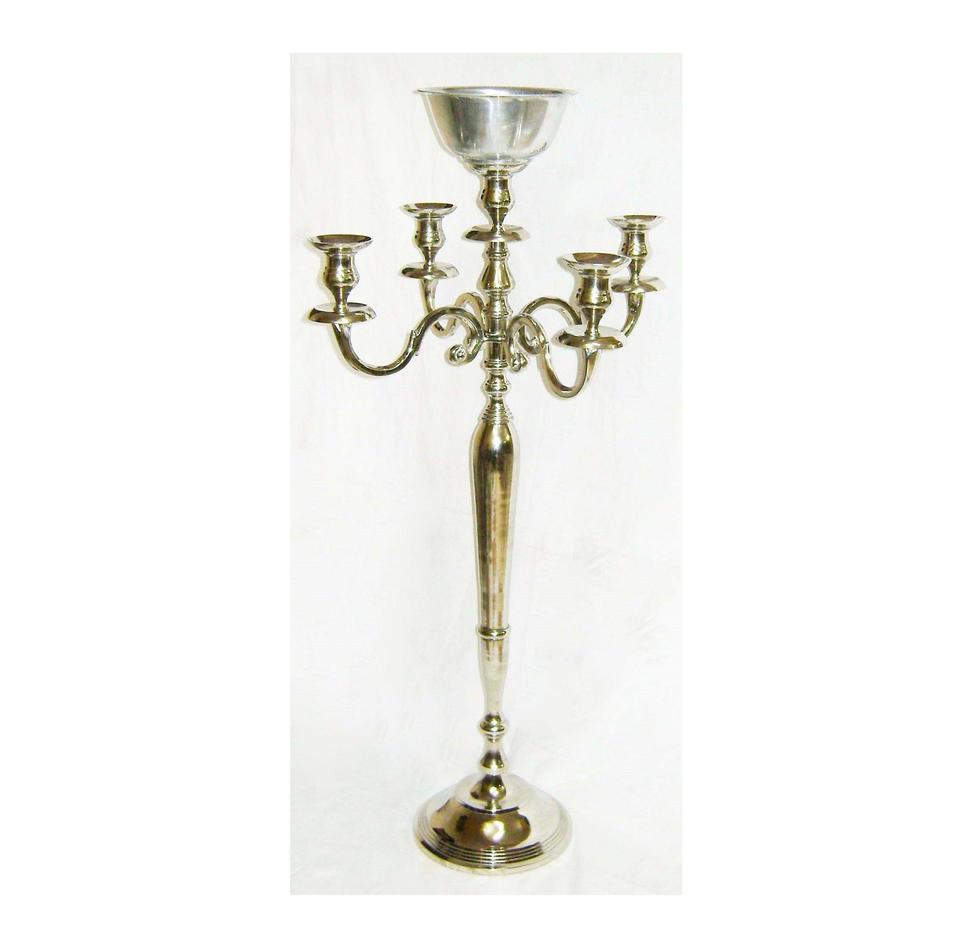 Factory Hot Selling Products Wedding Event Candelabra Candle Stick Metal Silver Shiny Candle Holder With Clear Glass Votives