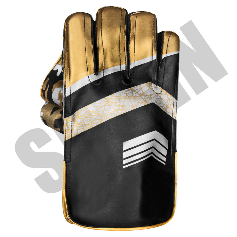 Factory Made Custom Cricket Wicket Keeping Gloves - Premium Gold & Black Camo Design Unisex Match Quality with Personalized Logo