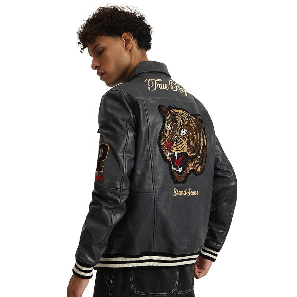 Factory-Made Men's Winter Leather Jacket High Quality Embroidered Hip Hop Style with Zipper Closure Hot Sales
