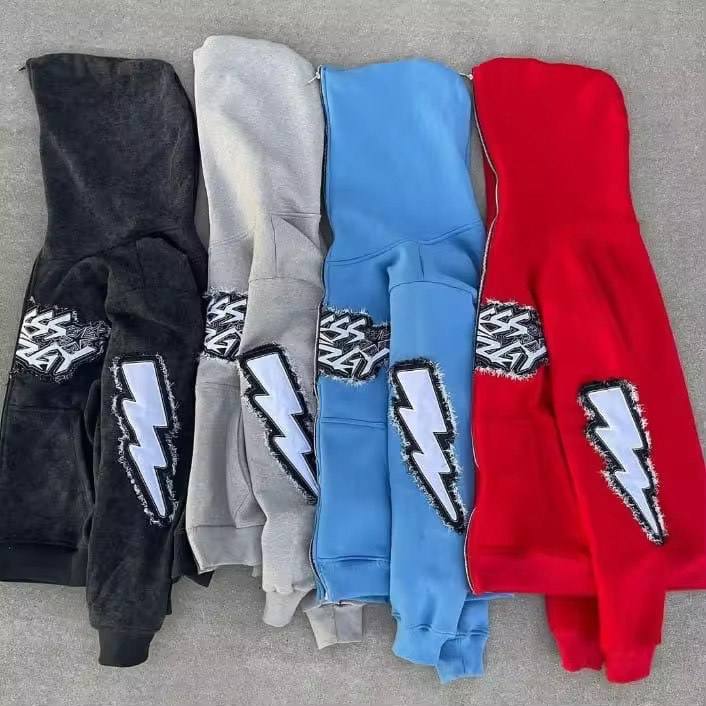 Factory Made OEM Services O Face Zipper Hoodies Distressed Embroidery Flare Warm Street Fashion Unisex Sizing Cotton Track SUIT