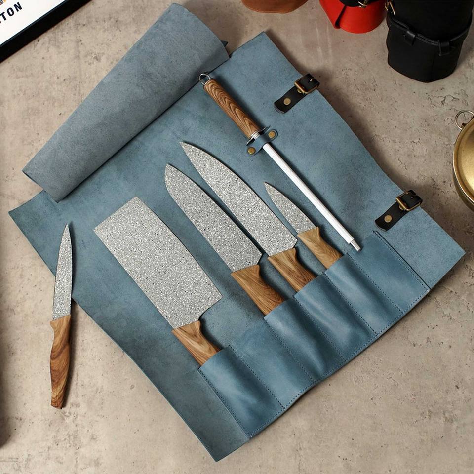 Factory Made Price OEM Rich Grain Leather Knife Different Color Roll Tool Bag for Chef Knives