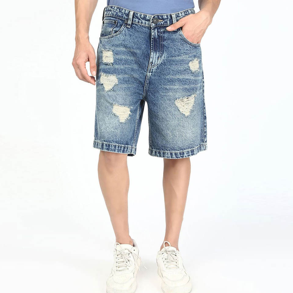Factory Made Wholesale Men's Casual 100% Cotton Eco-Friendly Denim Shorts-High Waist Elastic Breathable & Quick Dry