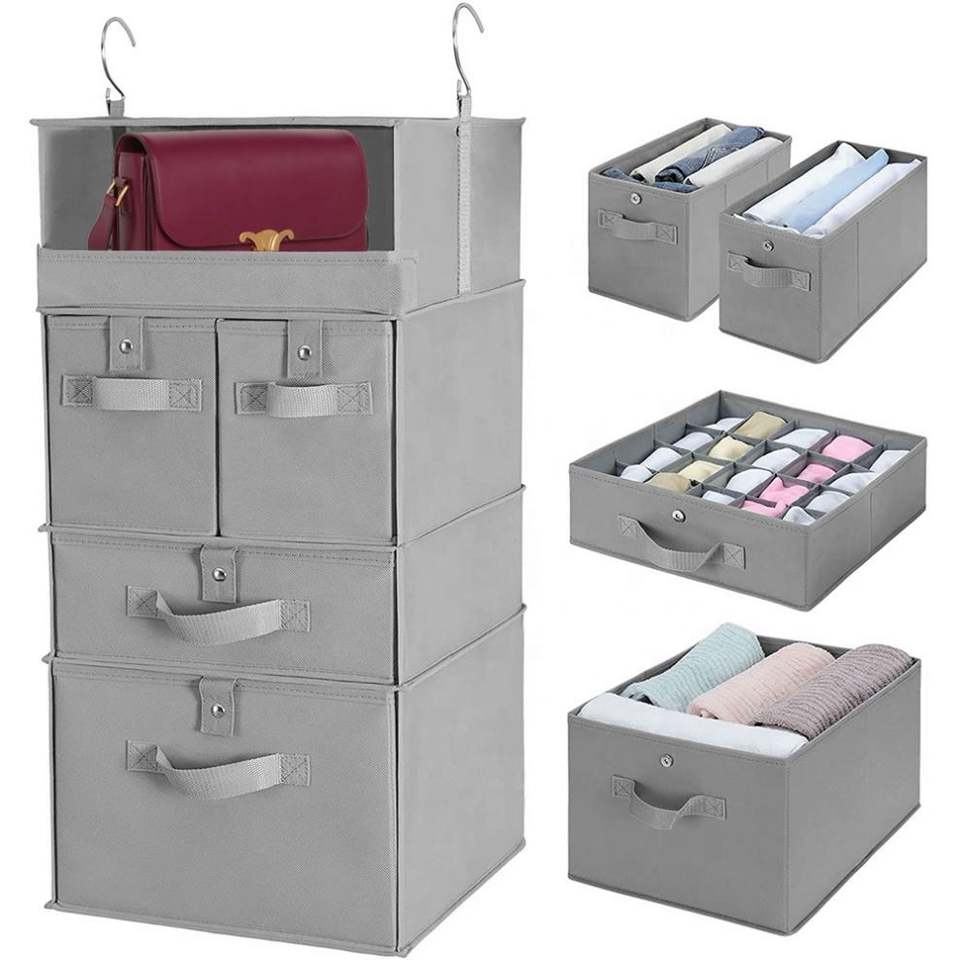 Factory Manufacturer Collapsible 4 Layers Metal Hook Shelves Organizer with Drawer Storage on Wall