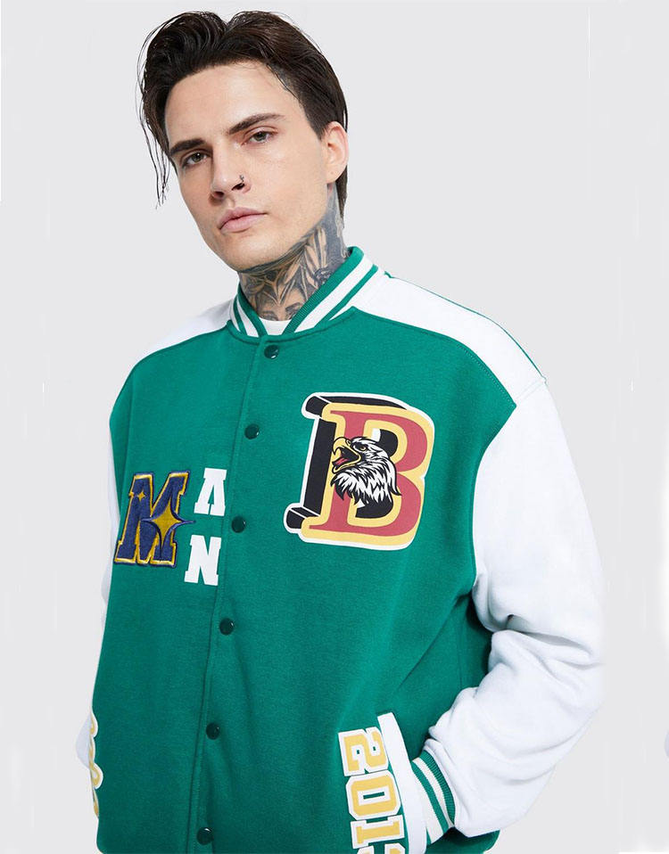 Customizable Winter Varsity Baseball Jacket Shoulder Stripe Leather Sleeves Plus Size Hood Plain Printed Patterns-Factory