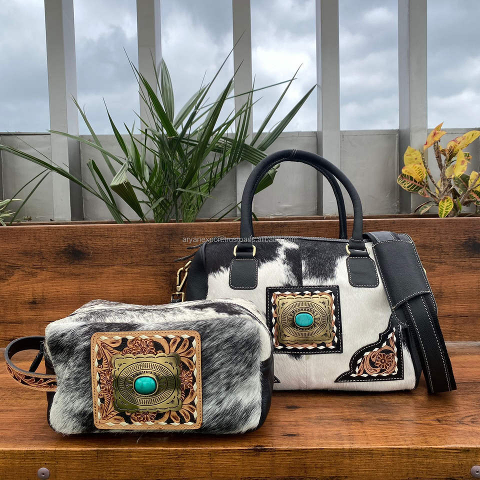 Tooled Cowhide Mini Duffel Bag & Toiletry Bag Combo sets