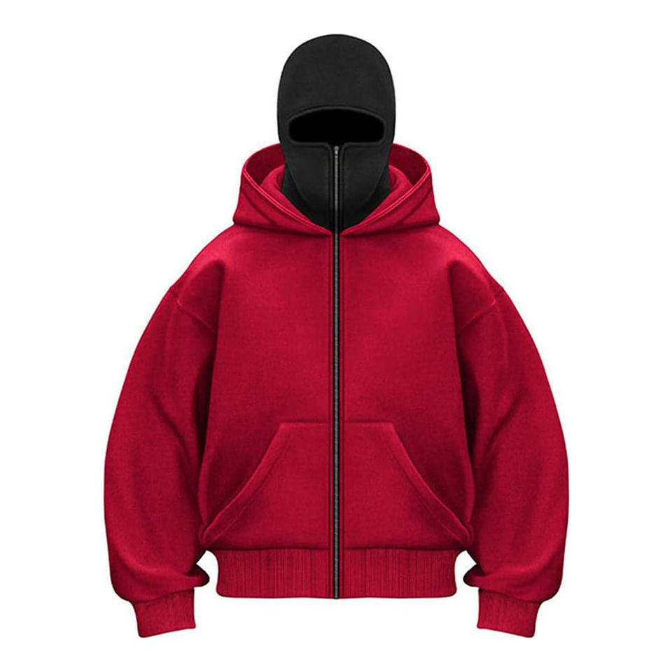 Factory Men's Winter Balaclava Hoodie Half Zip Double Layer Heavyweight Embroidered Custom Logo High Quality Streetwear