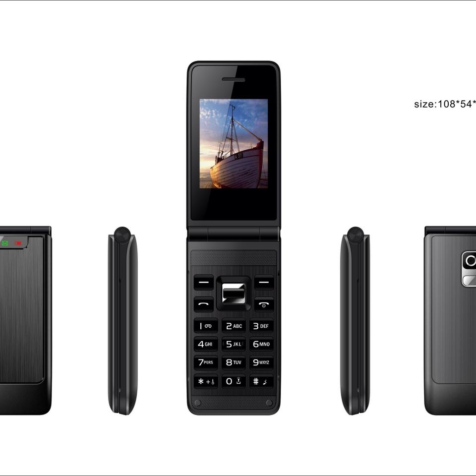 Factory Mini Cell Phone Camera Torch Light Sos 1.77 Flip Senior Phone in Stock
