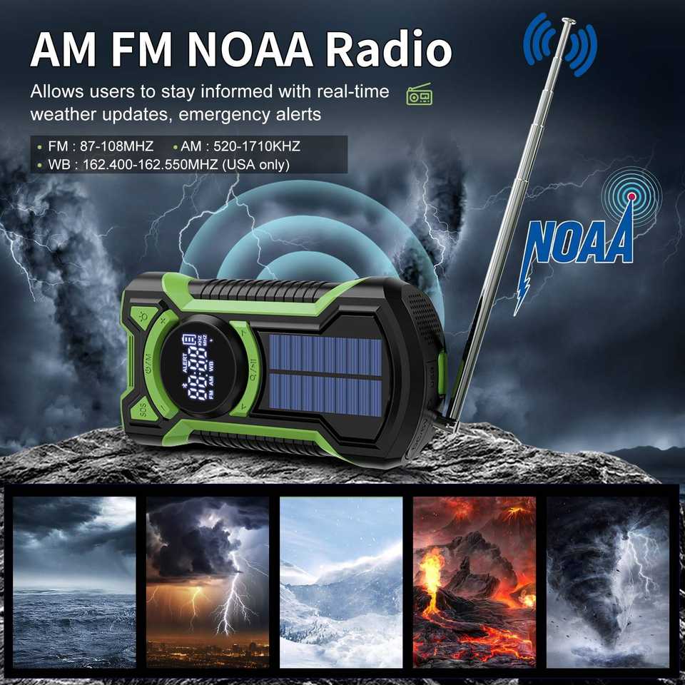 Factory Multifunction Solar Hand Crank Radio IPX5 Waterproof 4000mAh Power Bank NOAA FM AM SW BT Radio with Flashlight