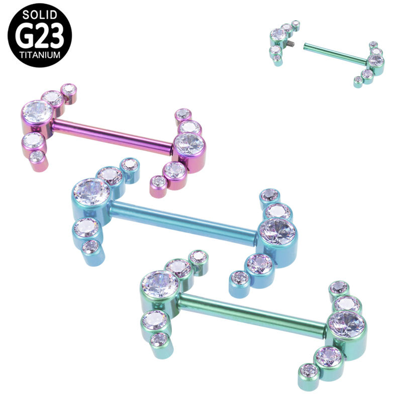 Factory Navel Nailed Lip Nail ASTM F136 Titanium Opal Stone Internally Threaded Tops Nipple Rings Piercing Jewelry for Women