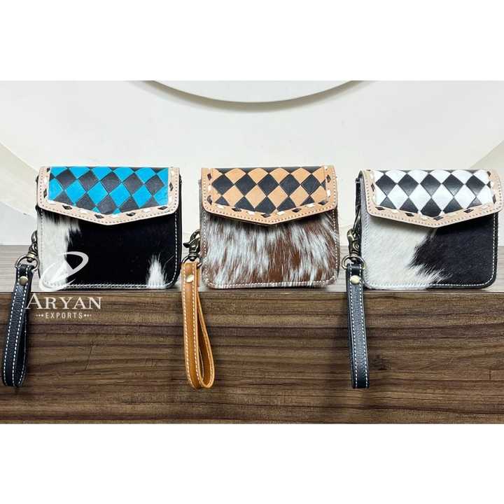 Genuine Cowhide Checkered Leather Coin Purse