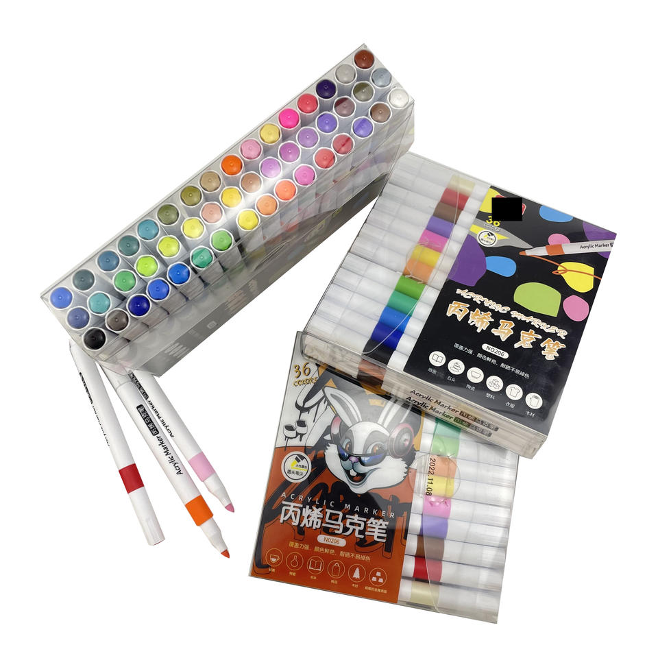 Factory New Product 24 36 48 Bright Color Acrylic Paint Marker Pen Set with PP Box Packaging Custom Pattern logo