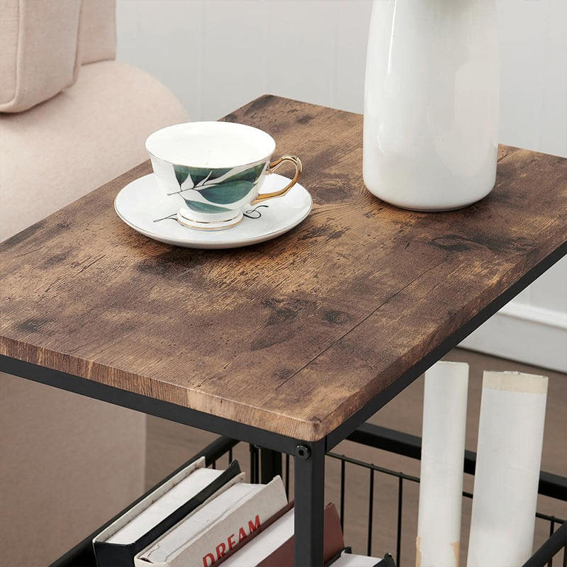 Versatile Side End Table Shelf Storage Organizer With Foldable Basket