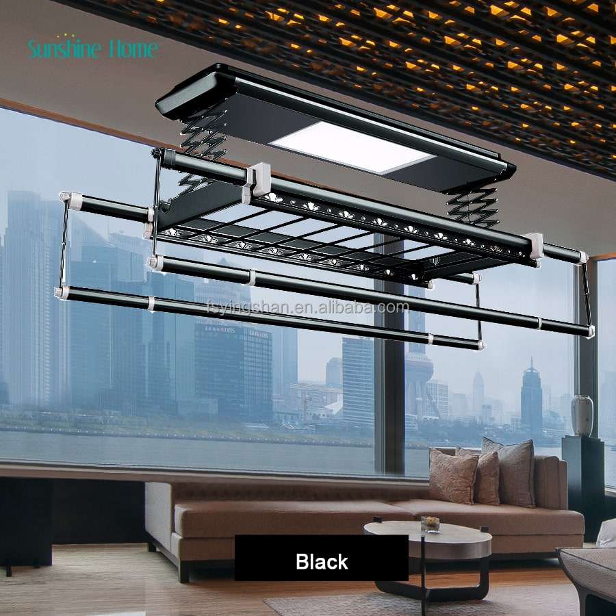 Factory OEM Black Voice Control Automatic Lifting Smart Clothes Hanger Dryer Ceiling Mounted With UV Lamp
