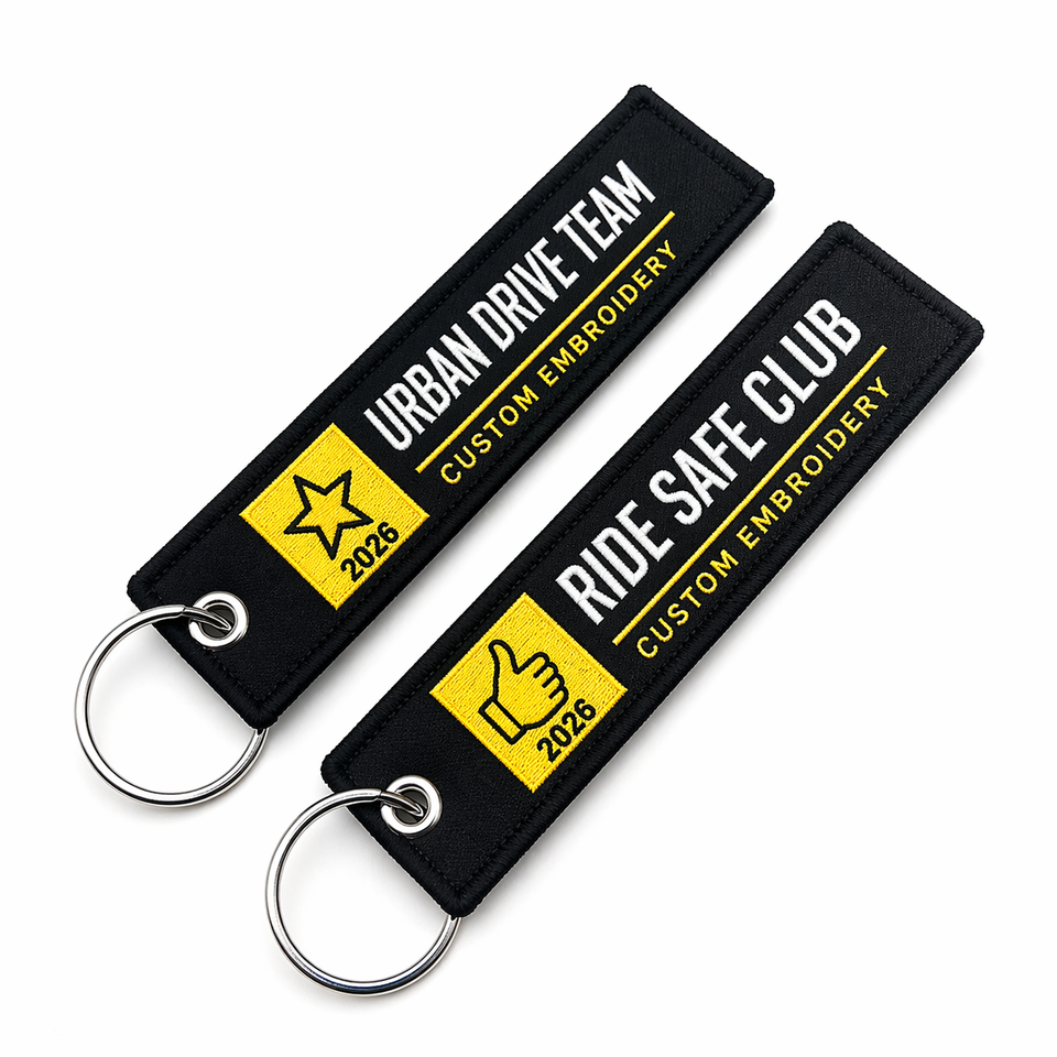 Factory OEM Custom Logo Embroidered Keychain Club Flight Motorcycle Drive Airplane Jet Tag Embroidery Keychain
