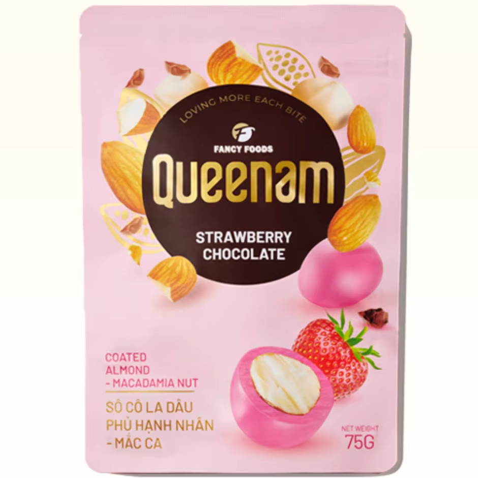 Factory OEM/ODM Wholesale High Quality Dragee Strawberry Chocolate Coated Almond Macadamia Nuts Candy Food 75G Good Price