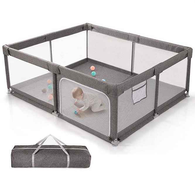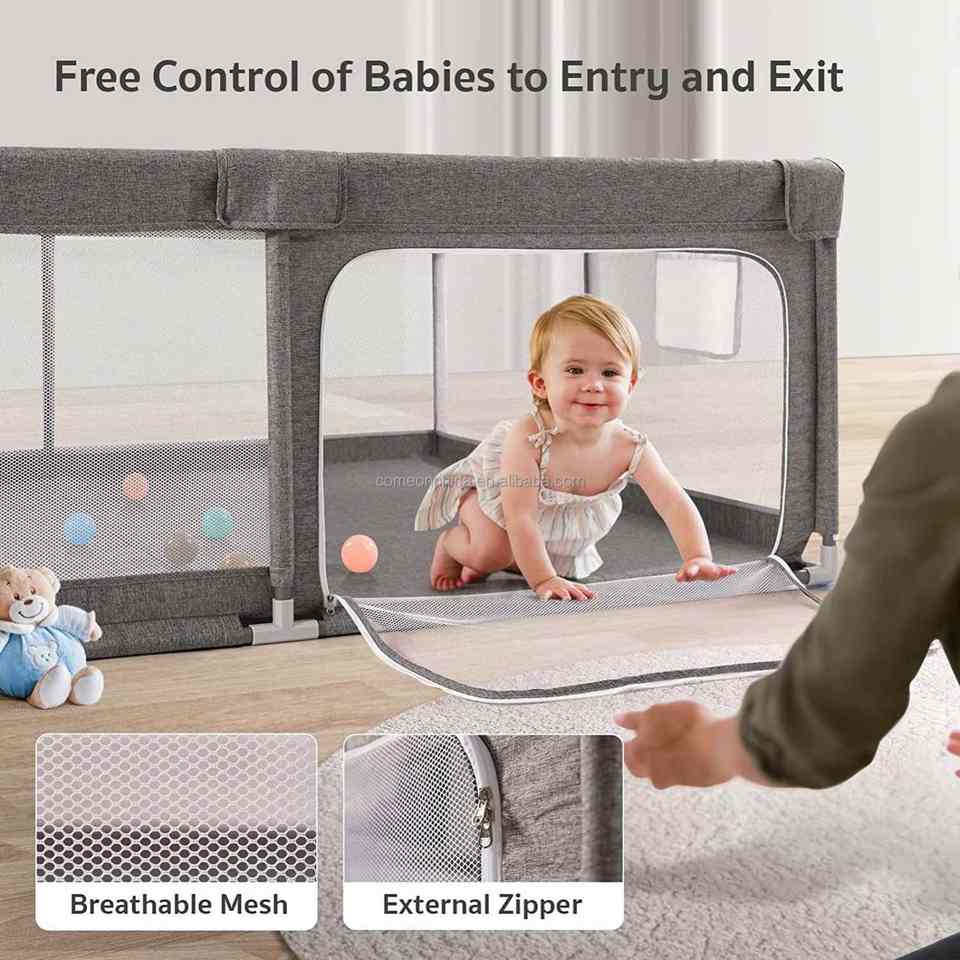 Factory Outdoor Indoor Portable Baby Safety Playard Toddler Playpen with Polyester Mesh Grey Mat for Kids