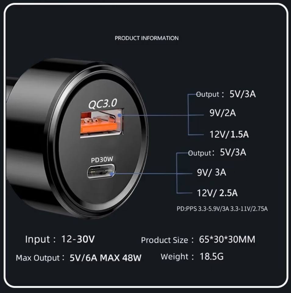 Factory Outlet 48W Dual PD Dual USB Car Charger Portable Adapter for iPhone for Samsung for Xiaomi for Huawei Selling for