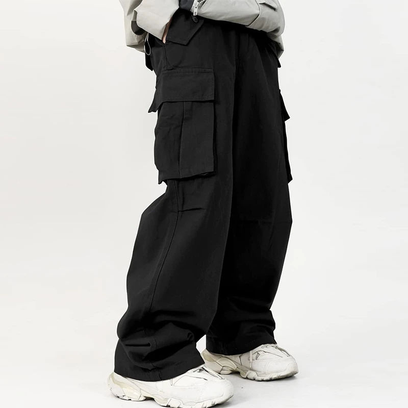 Factory Oversized Men Casual Trousers Fit Parachute Pants Men Loose Waist Custom Color Plain Baggy Cargo Parachute Pants