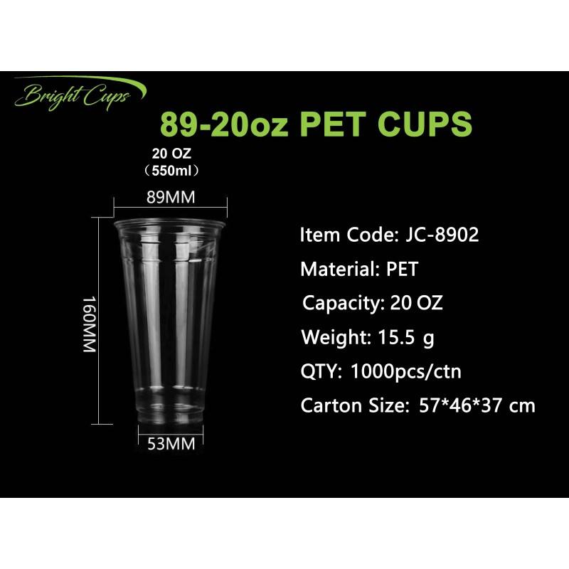 Factory PET Plastic Cup 20oz 89mm Disposable Transparent 550ml Plastic Cold Drink Juice Cup Reusable Plastic Cup Wholesale
