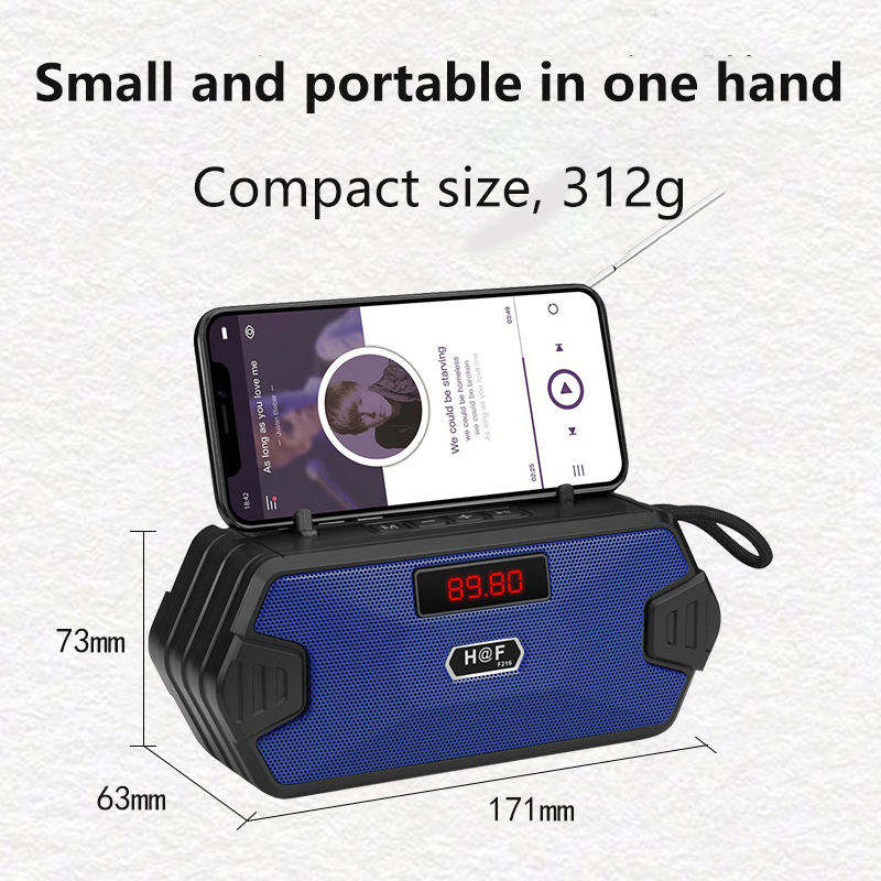 Factory Portable Solar Panel BT5.0 Speaker FM Radio Digital Display 360g Lightweight 18.4×6.8×8cm Outdoor Camping Audio Player