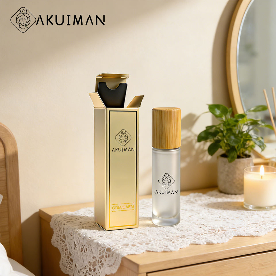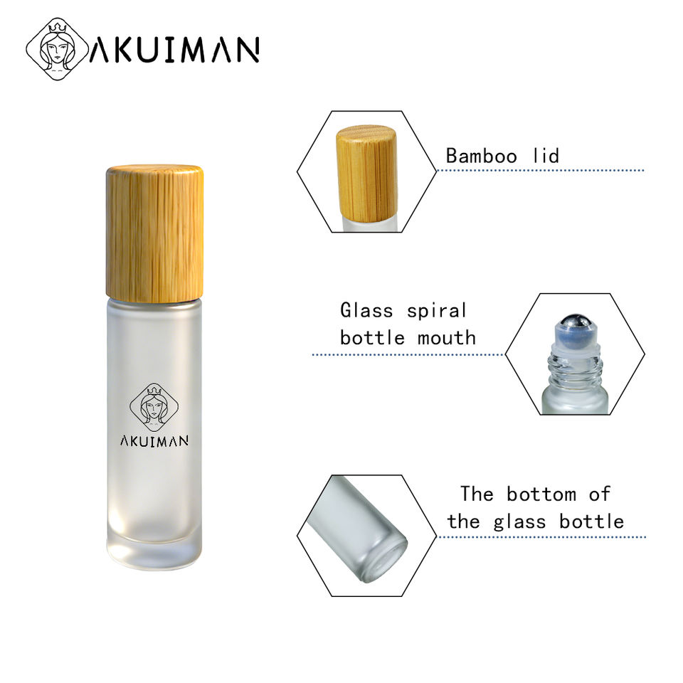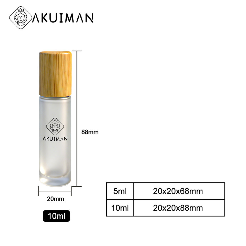 Factory Price 5ml 8ml 10ml Amber Frosted Eye Serum Roller Bottles Plastic Bamboo Pattern Screw Cap With Metal Ball