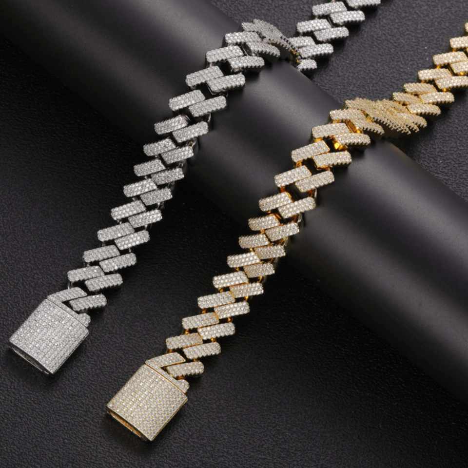 Factory Price 925 Sterling Silver Cuban Link Chains Heavy Round Moissanite Diamond Hip Hop Iced Body Jewelry for Men's Weddings