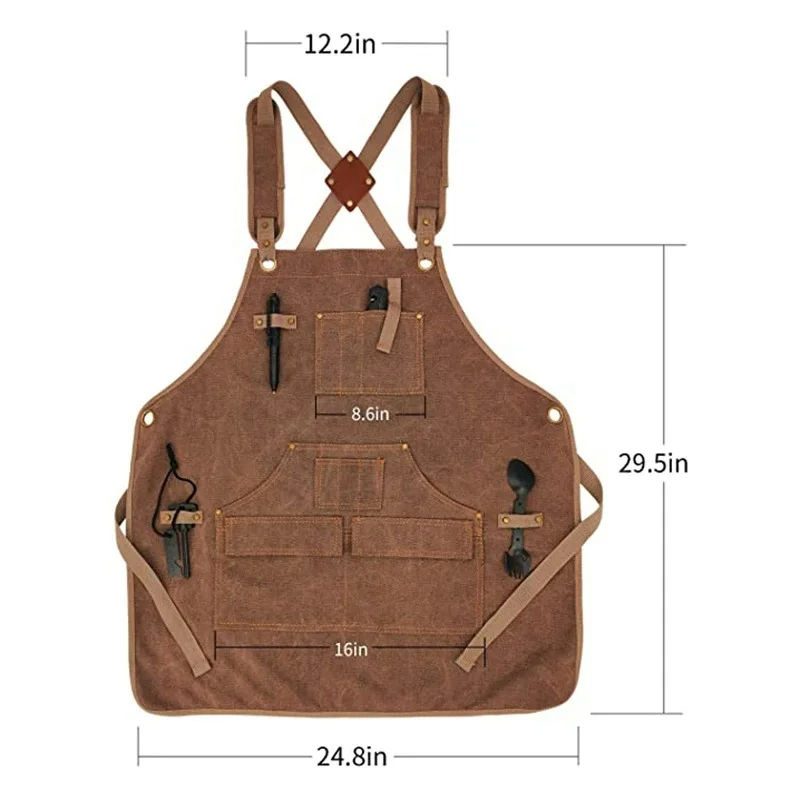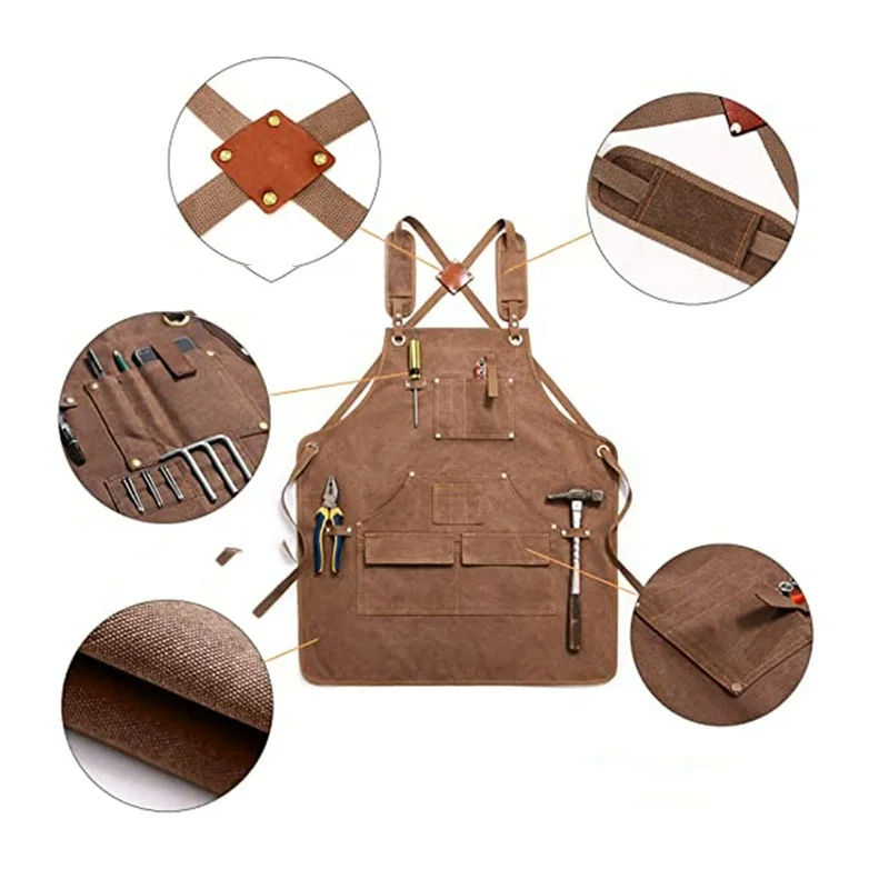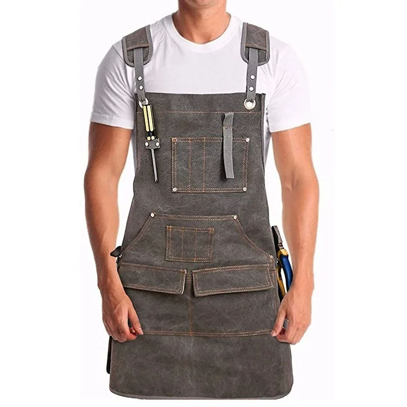 Factory Price Adjustable Cross Back Leather Kitchen Apron Chef Cooking Canvas Denim Webbing with Ring XL Size Cotton Material