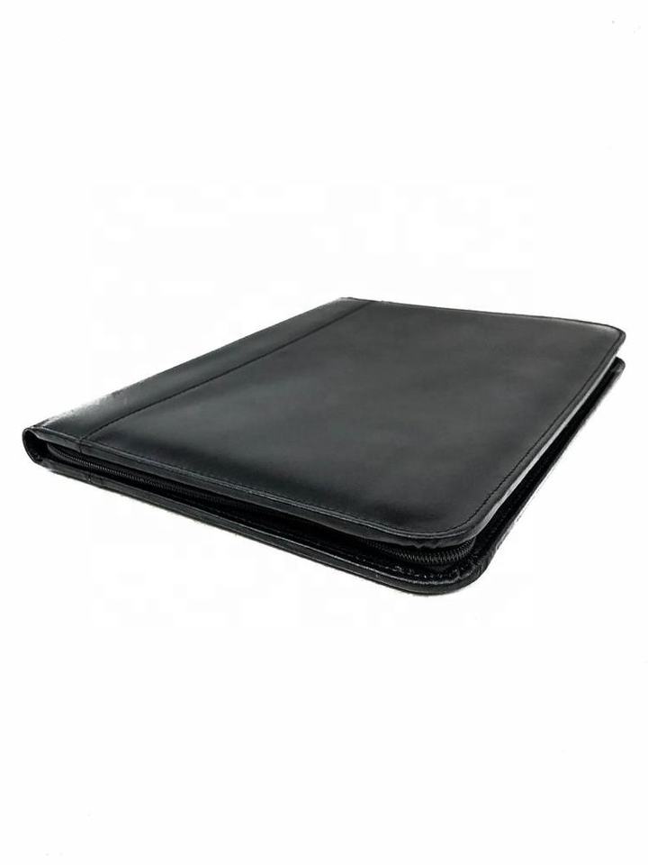 Factory Price Custom Genuine Leather Business Zippered Portfolio Case Organizer File Folder A4 HHD-0196