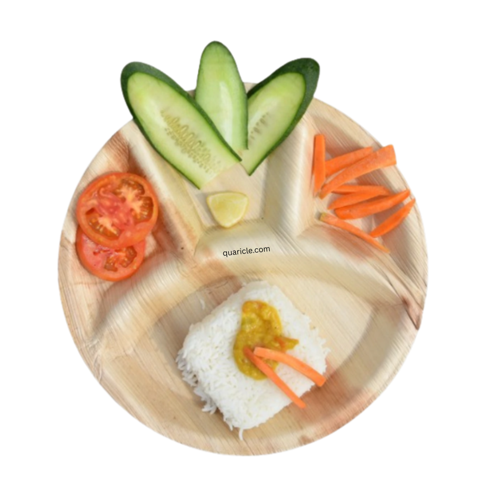 Factory Price Disposable Areca 4CP Heavy Duty Meal Tray/Platter/Plate for Birthday Events School Hotel or Home Food Serving