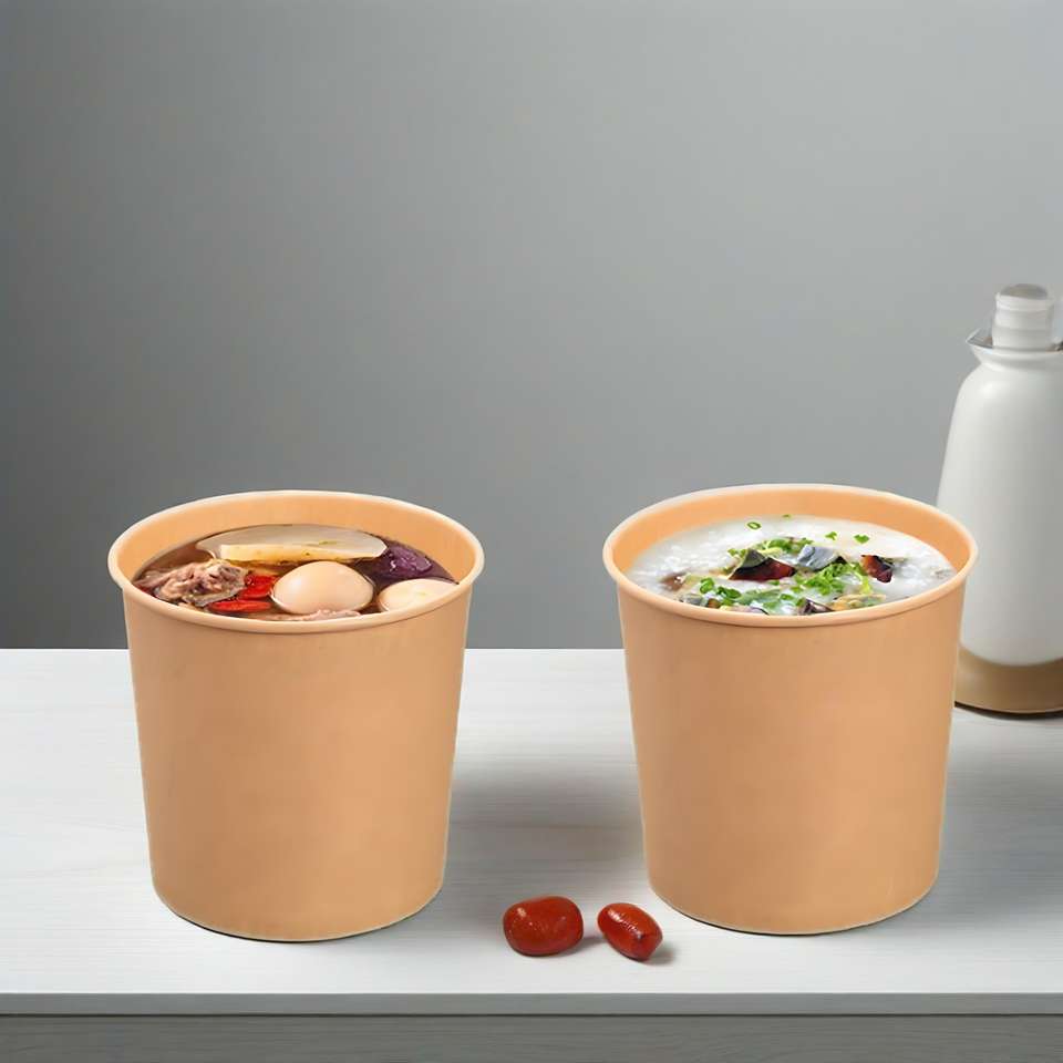 Factory Price Disposable Eco-Friendly Paper Bowl Box Soup Takeaway Food Packaging Porridge Barrel with Food Bucket Cover