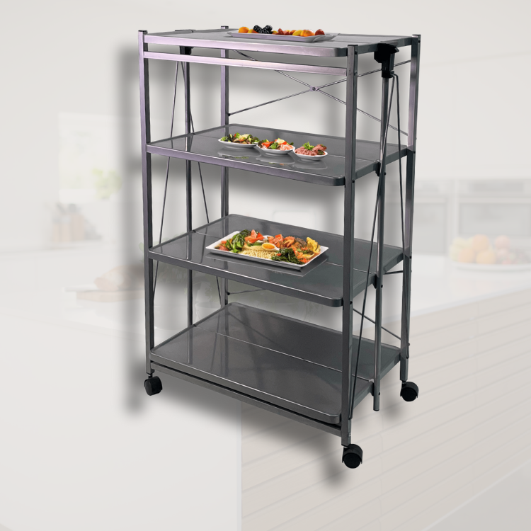 Product name:Factory price four layers iron board foldable kitchen rack with wheels
