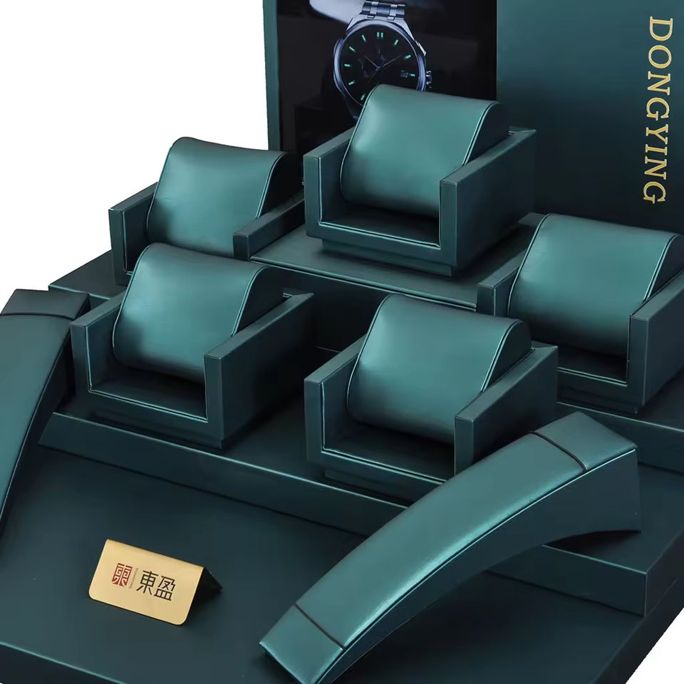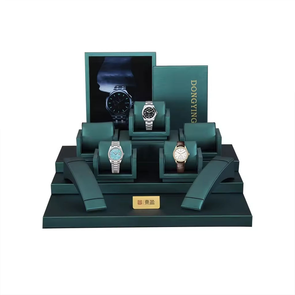 Factory Price Green Counter Window Display Tray Emerald Green Fiber Display for Jewelry Luxury Watch Store Display Rack