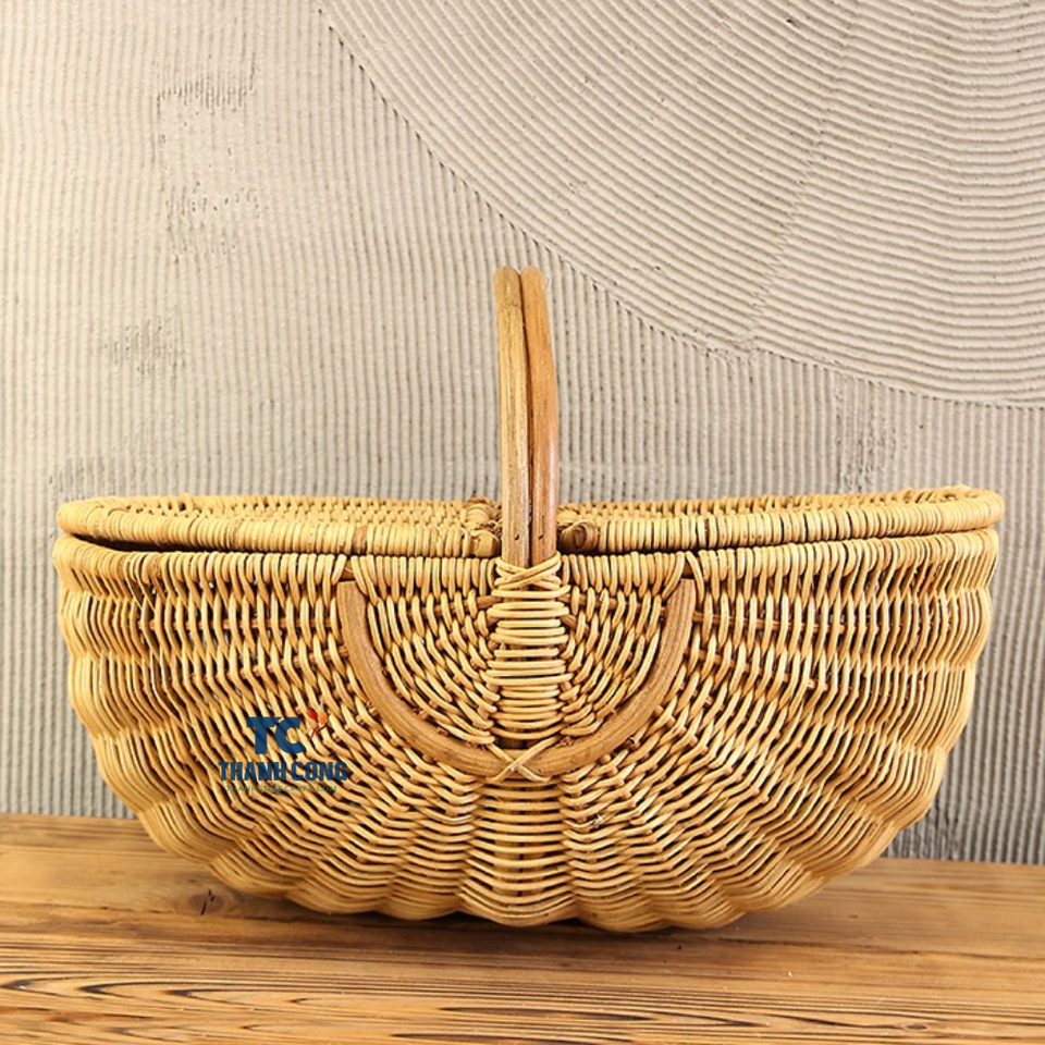 Factory Price Handmade Rattan Storage Basket Rattan Picnic Basket With Handle and Lids Decorative Made in Vietnam