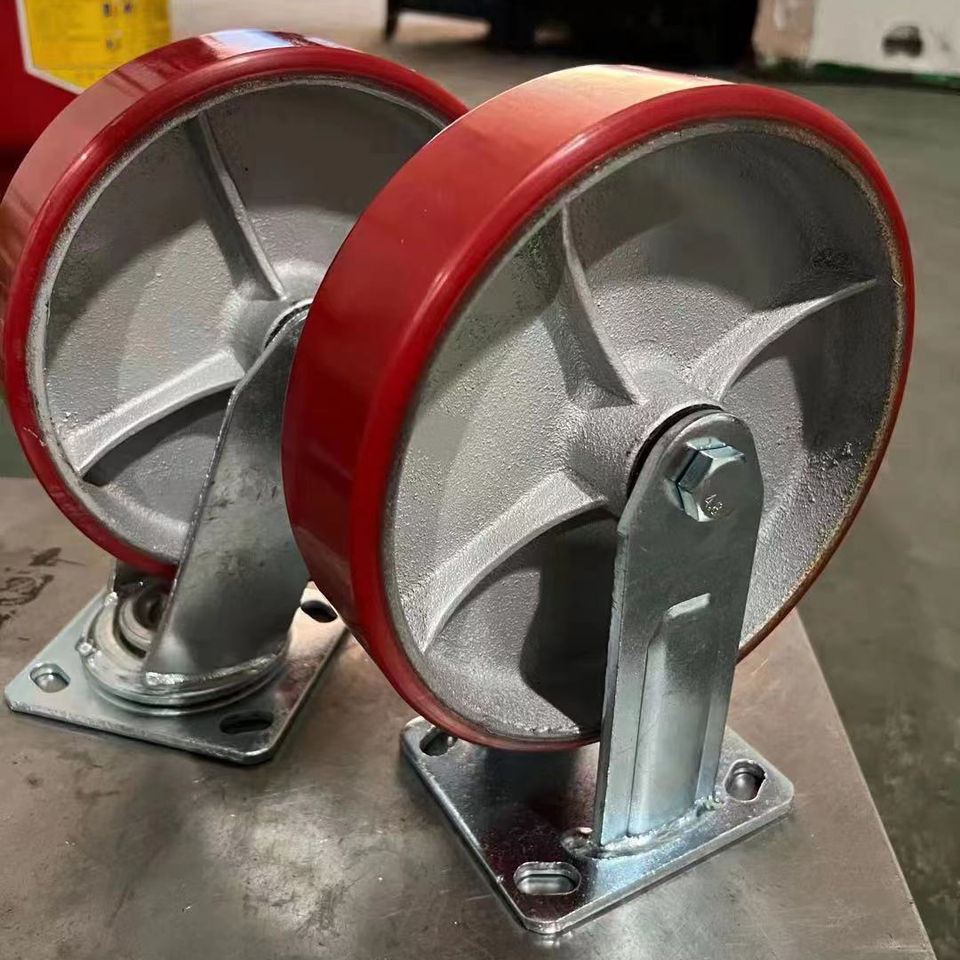 Factory Price Heavy Duty 6 Inch Industrial Iron Core PU Caster Wheels 150mm Red Polyurethane Swivel Brake Made Durable Rubber PP