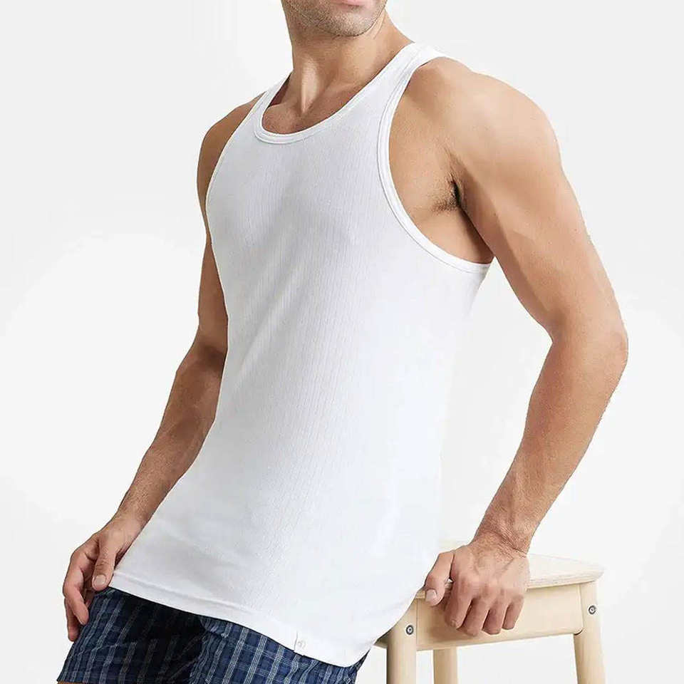 Factory Price High Quality Breathable Knitted Men Tank Top Polyester/Cotton Blend V-neck Collar High Street Style Made Pakistan
