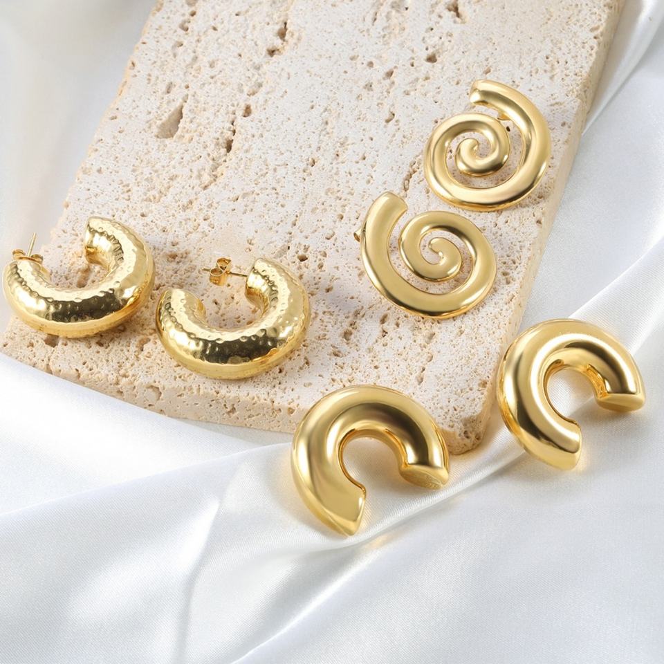 Factory Price Ins Hammered Chunky Hollow PVD Gold Plated Jewelry Stainless Steel Hoop Earrings Spiral Stud Earring for Women