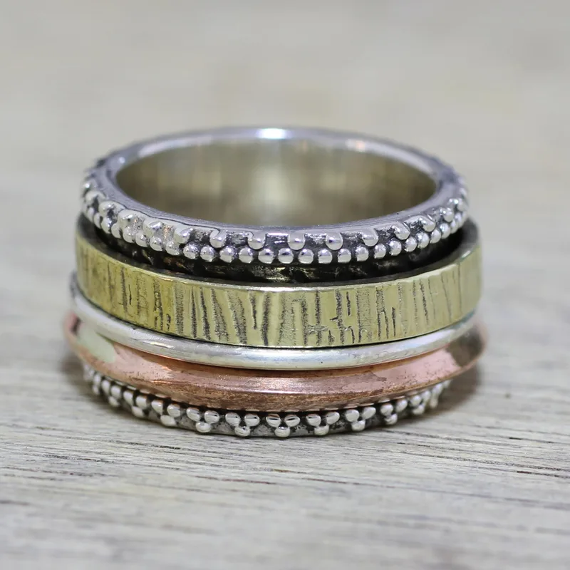 Factory Price Jewelry Sterling Silver Copper and Brass Textured Spinner Ring Classic Fine Jewelry India Weddings Anniversaries