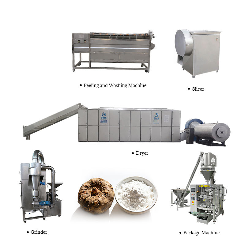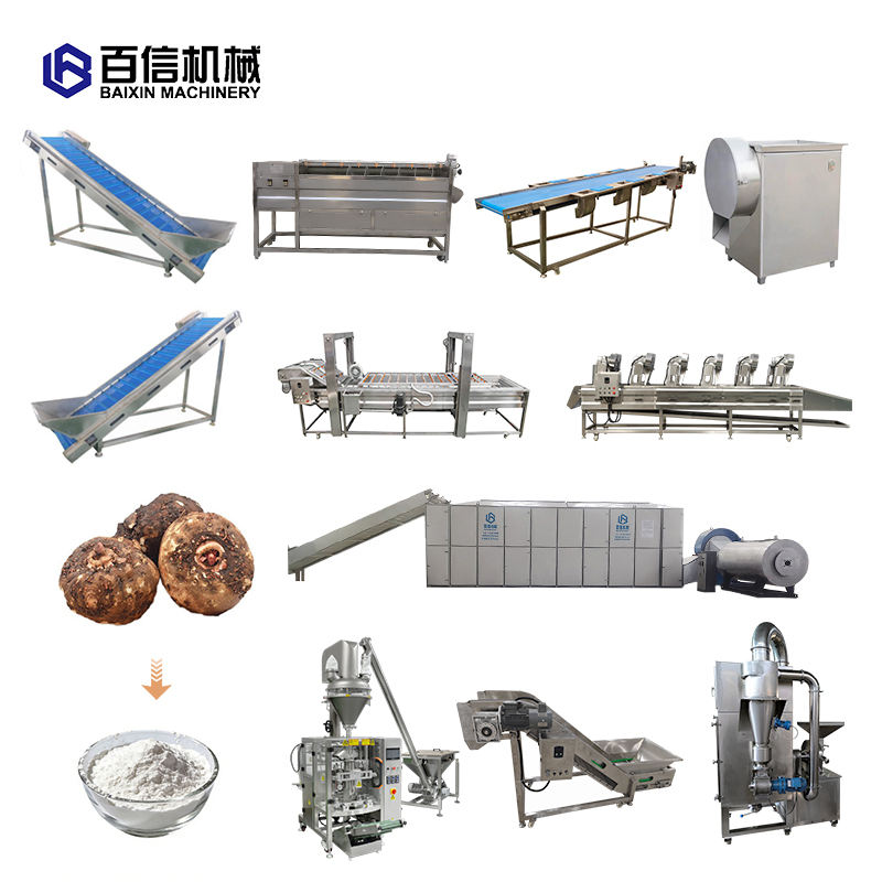 Automatic 100kg Konjac Powder Processing Line Factory Price Equipment Electric PLC for Plantain Onion Cassava Powder Making