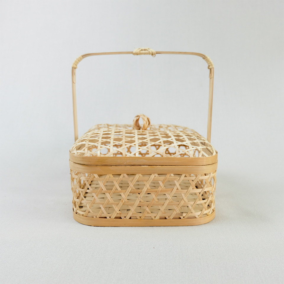 Factory Price Manufacturer Supplier Multifunction Bamboo Wicker Baskets Storage Rectangular Rattan Picnic Basket for Camp