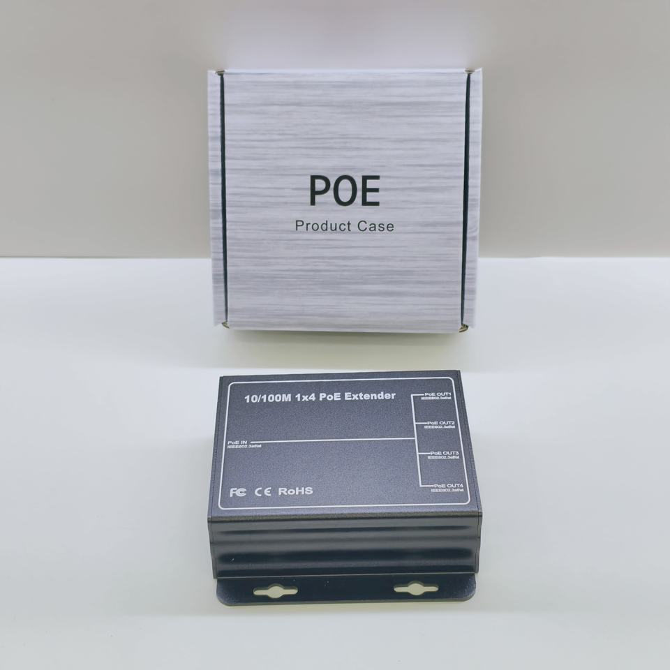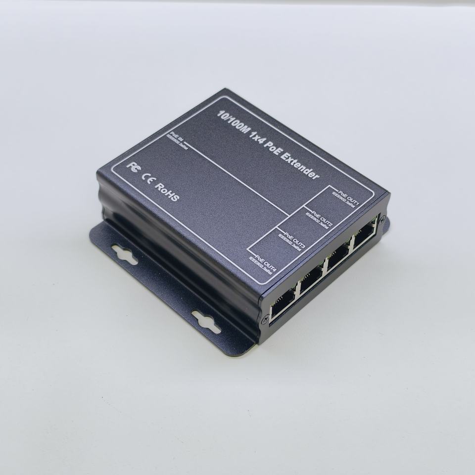 Factory Price Metal Shell 1 to 4 Port 30W Standard 10/100Mbps PoE Extender 100m for IP Camera System