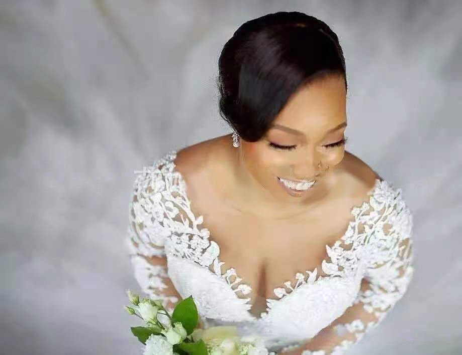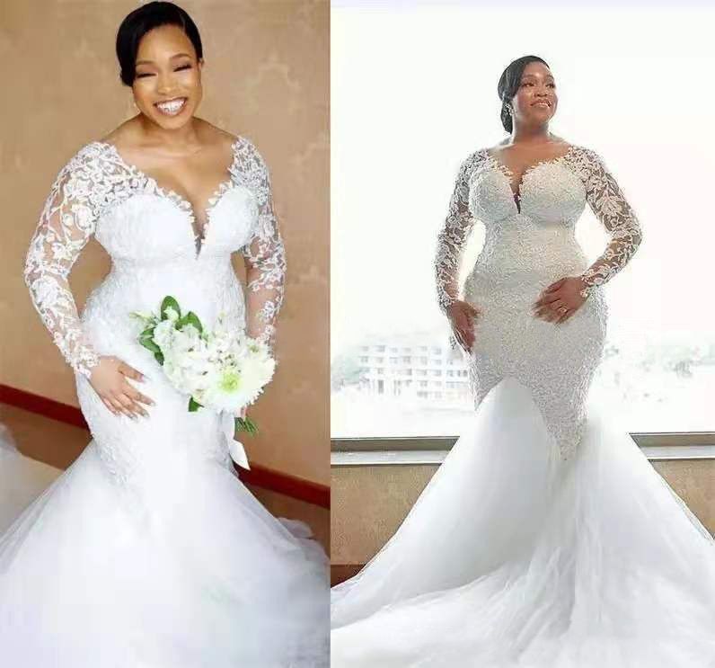Factory Price Modern Simple Deep V-neck Backless Wedding Dress Hot Sale Long Sleeve Fishtail Elegant Embroidery Train Lace