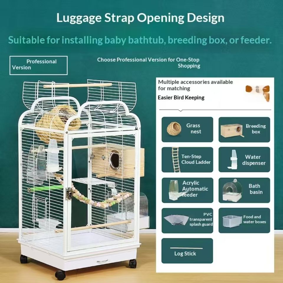 Factory Price Modern Solid Large Capacity Eco-friendly Metal Wrought Iron Wire Open Play Top Parrot Cage With Box