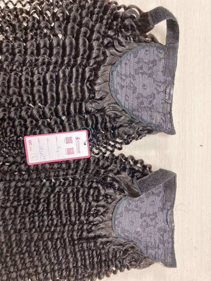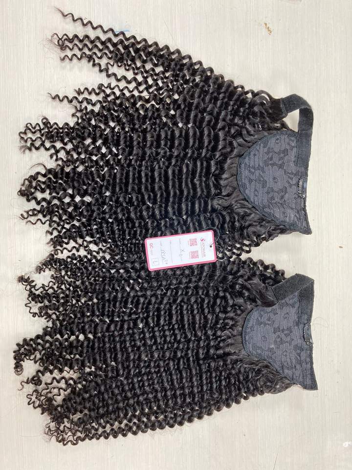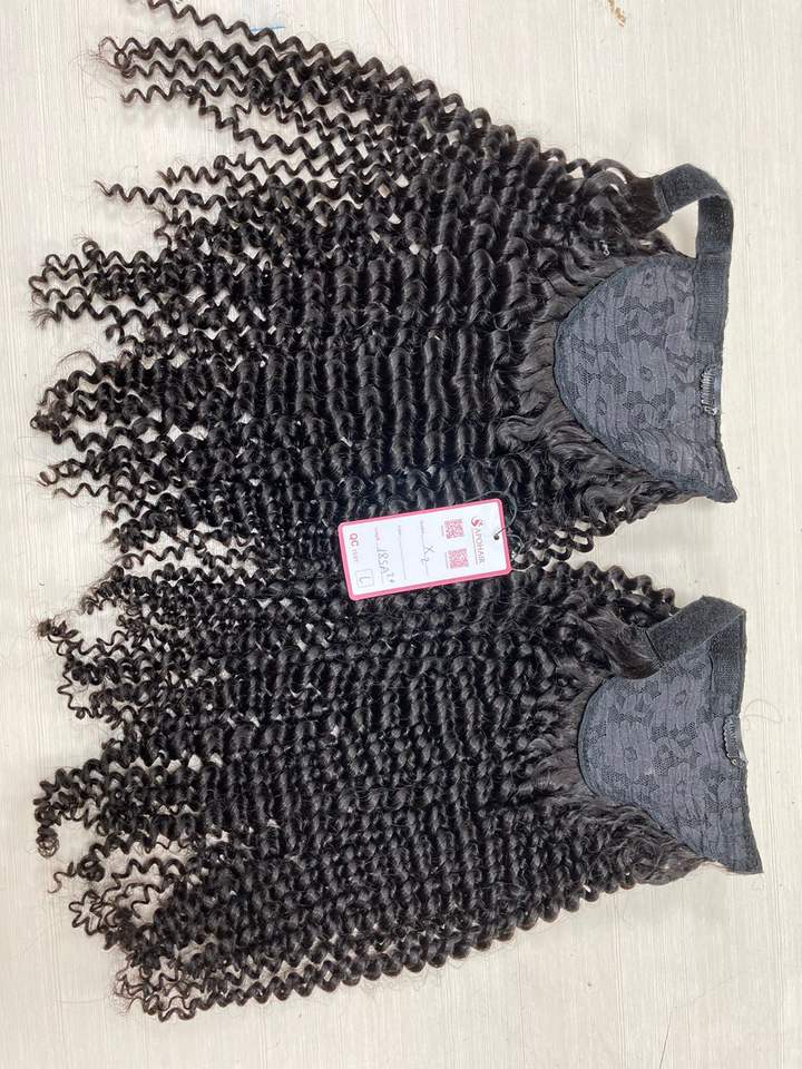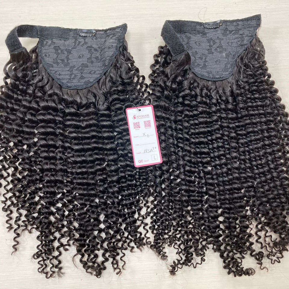 Factory Price Natural Black Remy Hair Clip-in Ponytail Hair Extensions 18 Inch Deep Curly Human Hair