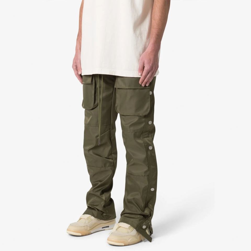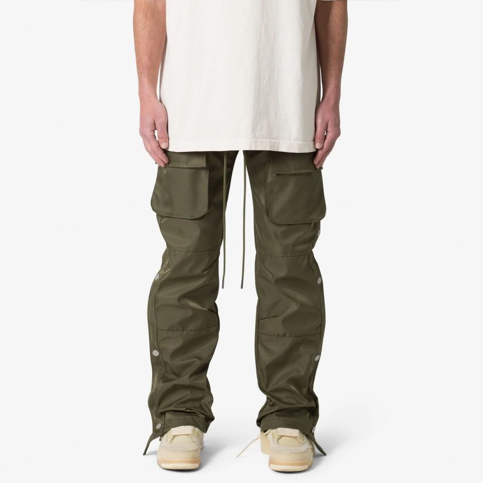 Front Cargo Pockets Nylon Stacked Men Parachute Pants