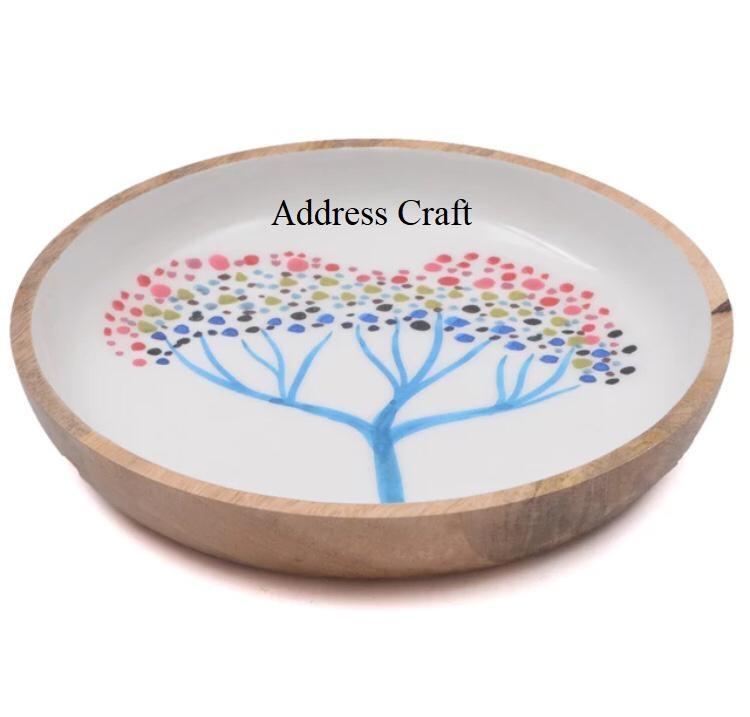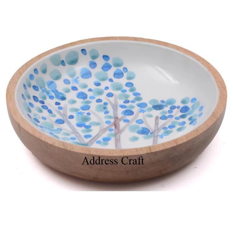 Factory Price Supplier Dinner Table Wooden Fruit Bowl Decorative Enamel Sticker Print Serving Bowl Dinnerware Dishes Plates Bowl
