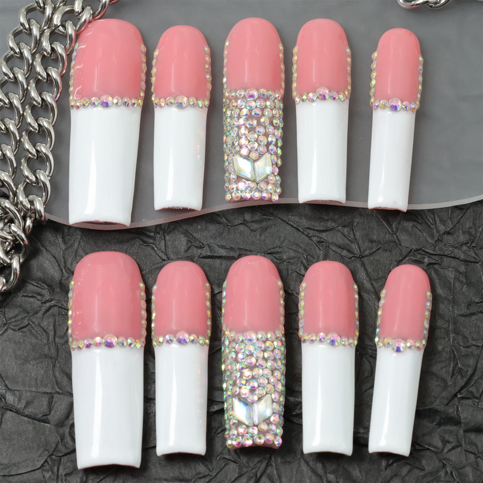 Factory Price Wholesale Design French tip nail Handmade Press On Nails 10 Pcs coffin Acrylic 3D Nails Artificial Fingernails